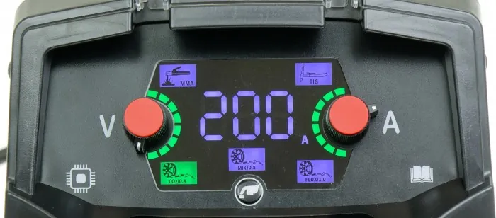 Czytelny i prosty w obsłudze panel sterowania umożliwia wybór jednego z trzech programów synergiczynch: